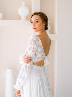 Du kannst die verschiedenen Brauttops zu Brautröcken und Brauthosen kombinieren. So ergeben sich ganz moderne Brautlooks für die standesamtliche Hochzeit, freie oder kirchliche Trauung.